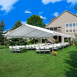 While providing each occasion with elegance and affordability, this tent works great for large graduation parties or small wedding receptions. Seats 60-90 people.